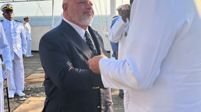 . A entrega foi realizada pelo Vice-Almirante Gustavo Calero garrida Pires, durante a Cerimônia Militar alusiva ao Dia do Marinheiro realizada na tarde da última sexta-feira (12), no Forte de Santo Antônio (Farol da Barra). A honraria é concedida em reconhecimento aos serviços de divulgação e fortalecimento das tradições da Marinha do Brasil.