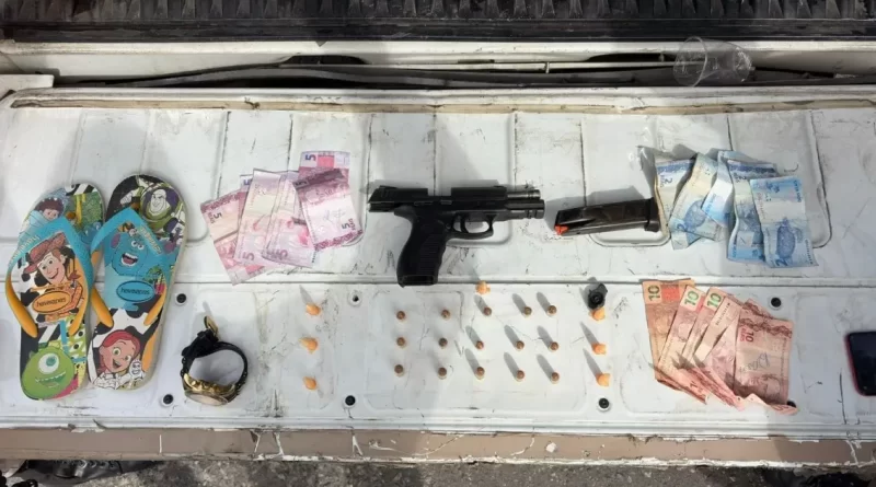 Com ele, foram encontrados em sua posse uma pistola, 15 munições intactas de .40, sete eppendorfs com cocaína, um aparelho celular, um relógio, uma corrente prateada, uma corrente dourada e R$ 113,00 em espécie.